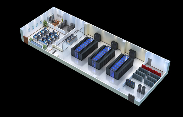 长沙微模块机房建设效果图设计,数据中心,拼接大屏背景墙可视化动态全景效果图制作。一般来说,简单的项目可以不提供CAD图纸,就像单纯的机房,给出长宽数据就大致可以了。
